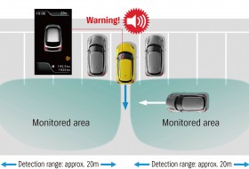 radaru zamontowanych z tyłu, aby ostrzec kierowcę o zbliżaniu się pojazdów. W